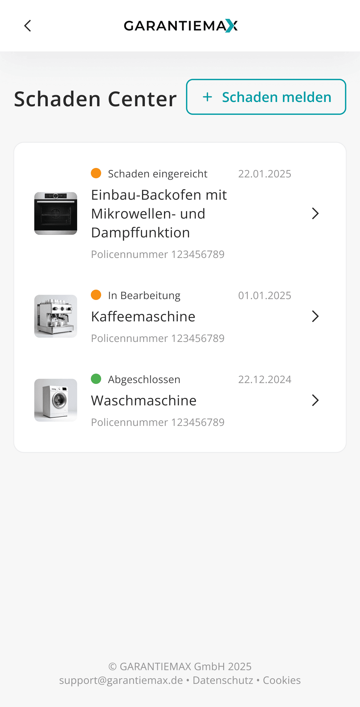 Schneller Zugriff auf alle Vertragsdetails und versicherten Geräte, jederzeit wissen, was geschützt ist